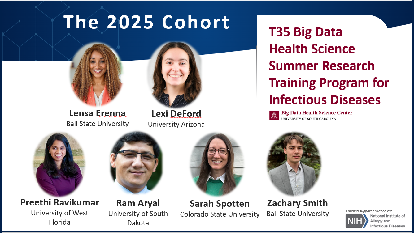 The NIH-funded T35 Research Traineeship Program is designed specifically for master’s and pre-dissertation doctoral students in physical and/or quantitative sciences from across South Carolina and the United States. This is an 11-week, full-time intensive course-based training program to work alongside established clinical scientists on one or more Big Data Health-related studies. In addition to formal classroom training (at no cost to the student), each student will receive accommodations and a stipend to be involved in a specific research project, actively participating in a hands-on manner in a research laboratory currently conducting studies related to Big Data Health Science. As you prepare for a career in Big Data Science, you can learn about research that involves Big Data and work alongside well-known established researchers in a full-time, hands-on setting. For commonly asked questions, feel free to visit our Q&A page.